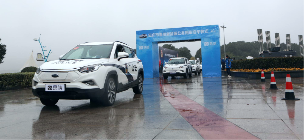 • 安庆市警用新能源公务用车交车仪式在皖江广场举行,百台思皓新能源汽车交付至安庆市公安系统。此次百台警务用车共三款,分别是思皓E20X,思皓E40X、思皓E50A。